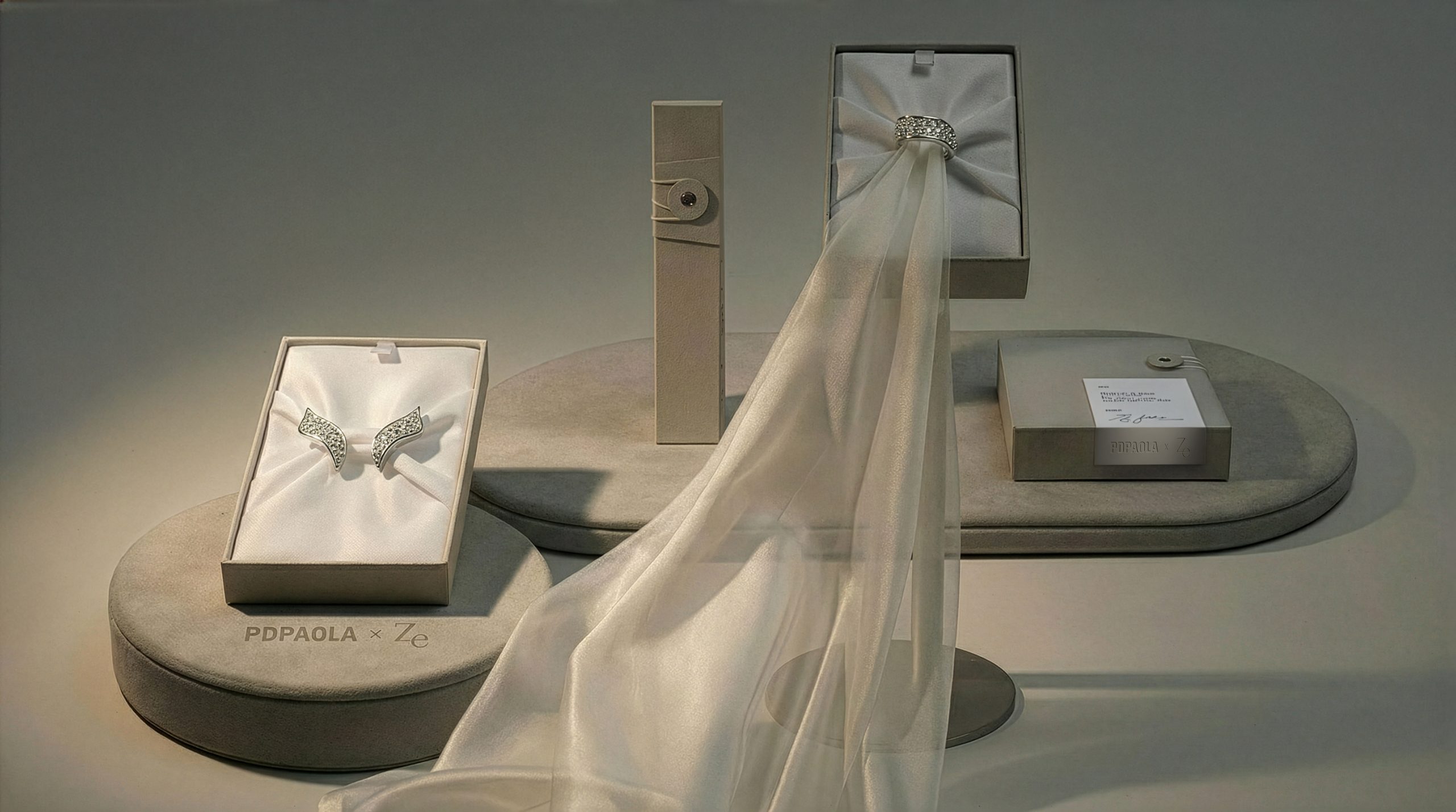 Ze Garcia Collab: campaign concept for the launch of a bridal ring and earring set. Creative development, graphic materials, and packaging design that evoke the bridal universe through the refined lens of an atelier aesthetic.